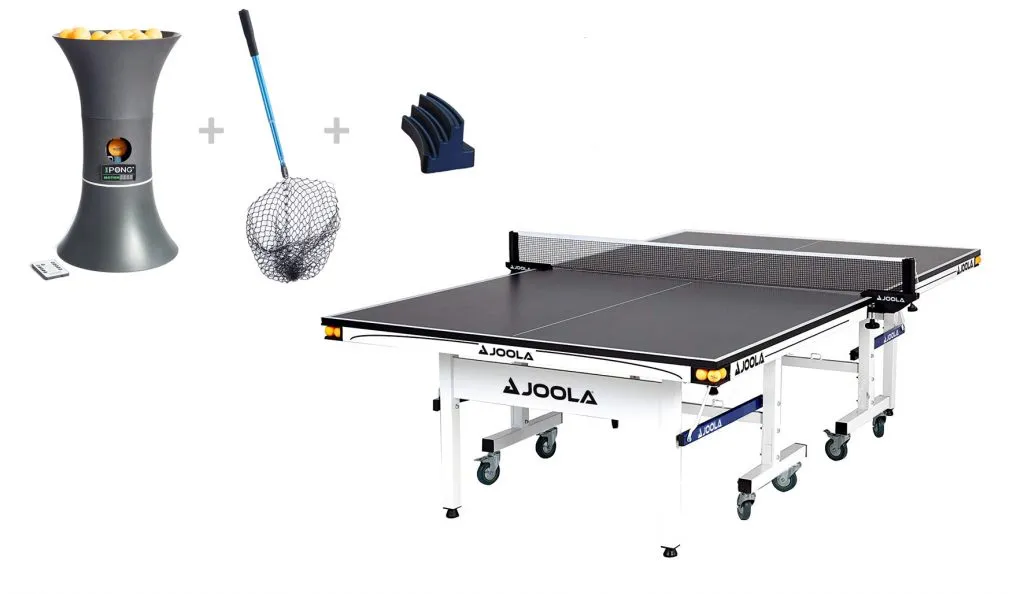 In some cases, you can get quite a bargain by buying a bundle that has both a table tennis table and a ping pong robot. The JOOLA United Pro 25 w/IPONG Robot Bundle is one of these. The iPong Trainer Motion robot that comes in this bundle has improved performance and consistency over the iPong v300 - and comes with a pick-up net and balls on top of that.